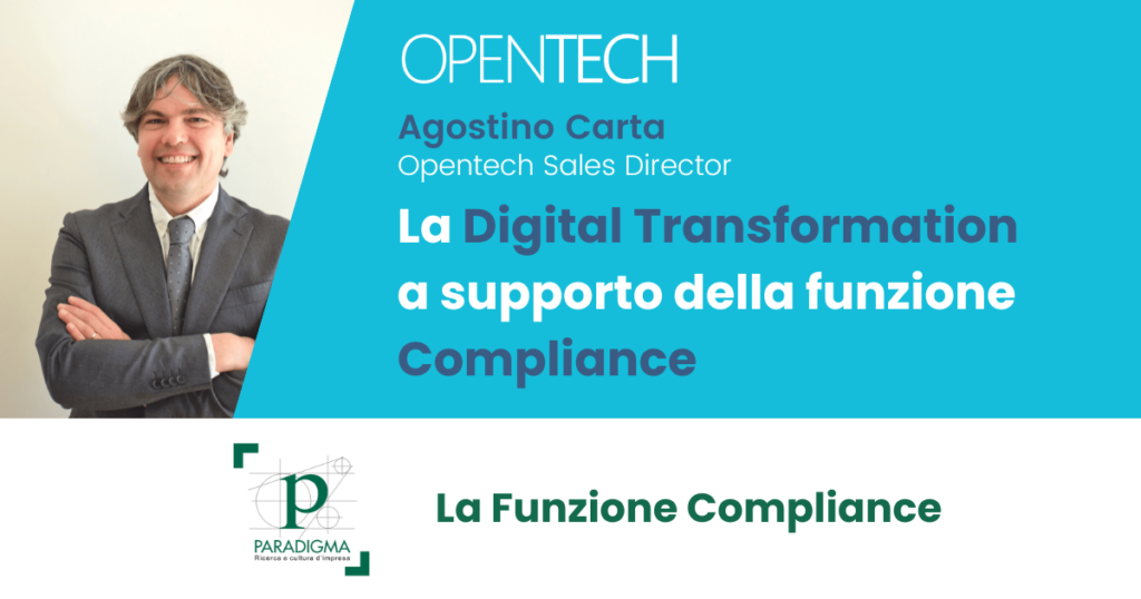 Opentech, grazie all’intervento formativo del Dott. Agostino Carta dal titolo “Gli strumenti della digital transformation a supporto della funzione compliance” incentrato sull’importanza di dotarsi di un software per le attività tipiche della funzione compliance, ha partecipato all’evento “La funzione compliance” indetto da Paradigma. Il seminario ha esplorato in dettaglio, anche attraverso l’analisi di esperienze di […]